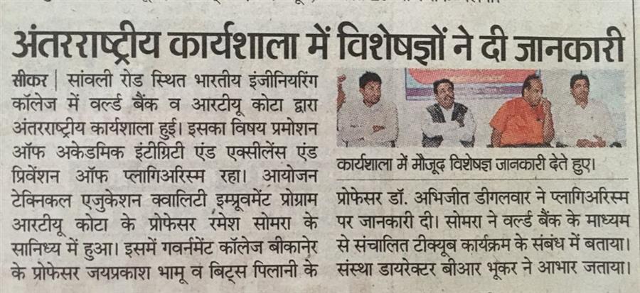 4. TEQIP-III Sponsored National Workshop in Association with RTU at BIET,Sikar